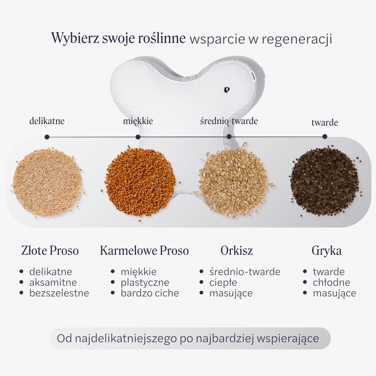 - Wypełnienie: ekologiczna łuska do wyboru: gryki, złotego prosa, orkiszu