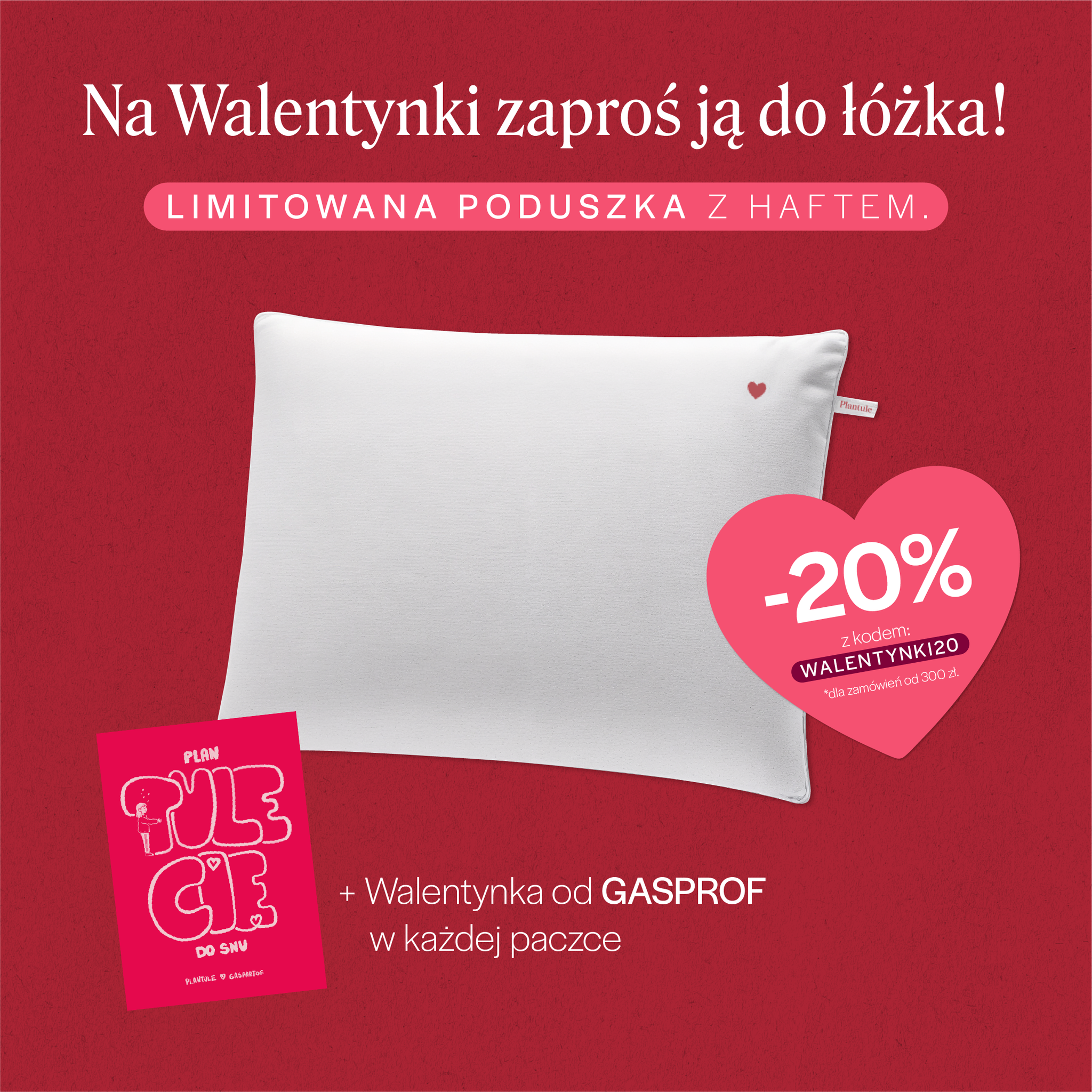 Poduszka do spania 45x60 cm edycja limitowana z różowym serduszkiem